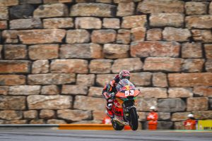 Sabah saatlerinde pisti vuran yağmurun ardından tam olarak kurumamış pistte zorlu koşullarda harika bir sürüş gerçekleştiren MM93 en yakın rakibinin 0.840 saniye önünde rahat bir şekilde pol pozisyonun sahibi oldu.