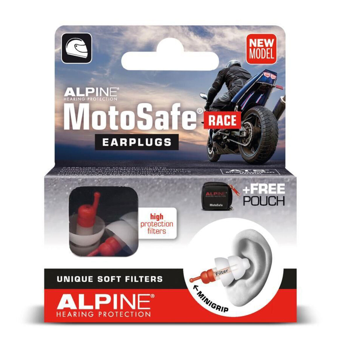 Alpine MotoSafe Race, motosiklet sürücüleri için yüksek performanslı işitme koruması sağlayan özel bir kulak tıkacıdır. Özellikle pist ve yüksek hız sürüşleri için tasarlanmış bu model, rüzgar ve motor gürültüsünü etkili şekilde azaltırken çok önemli sesleri duymanıza izin verir.